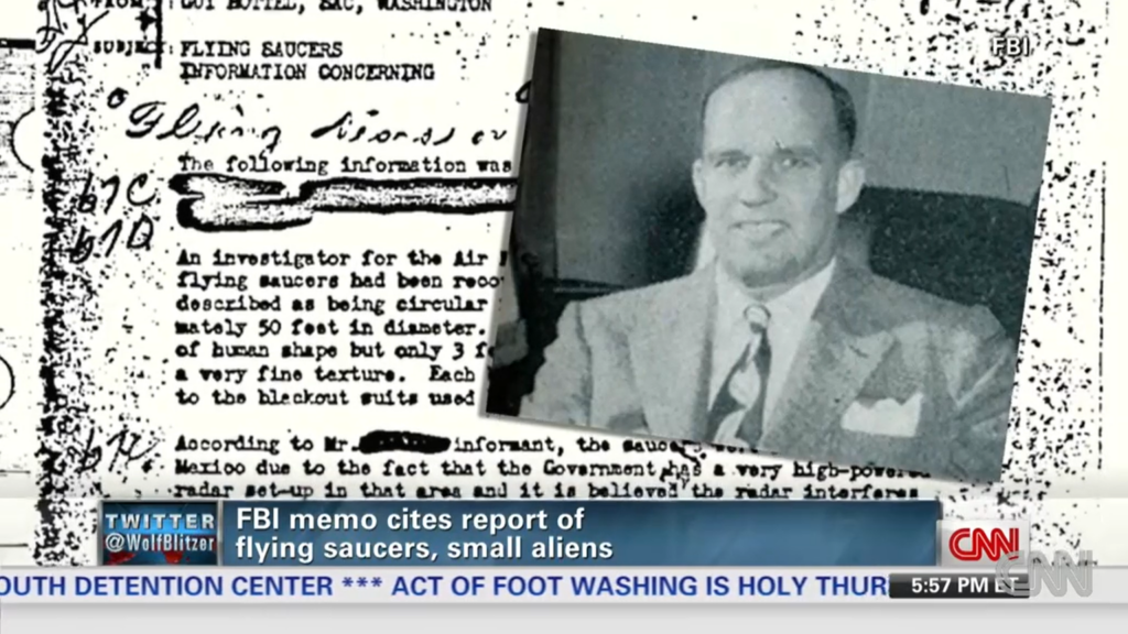 According to the memo, an FBI agent relayed a story from a third party who said an Air Force investigator had reported that: