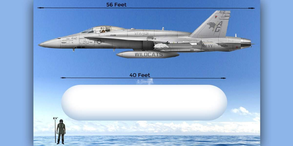 - Size (as reported): Fravor and Dietrich have described an object roughly fighter-jet-scale (~40 ft), though absolute size depends on range, which is unknown in the ATFLIR video alone. (The Washington Post)