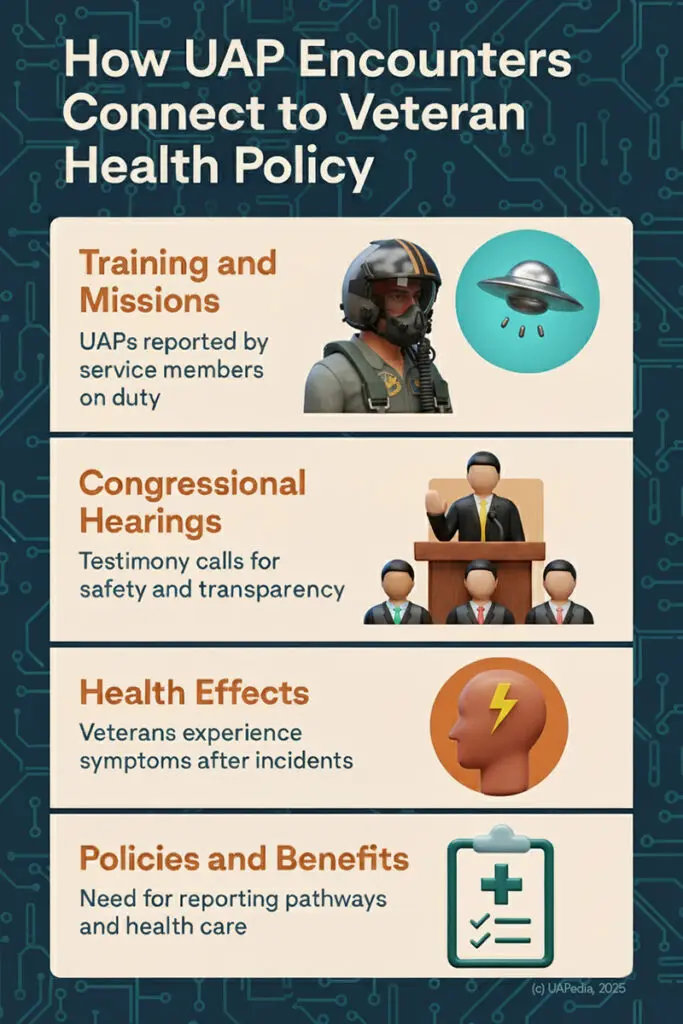 UAP veterans, UAP disclosure, veteran health policy, AARO UAP reports, Project Condign radiation, UAP pilot stigma, UAP whistleblower protections, DIA field effects, Rendlesham Forest veterans, VA UAP exposure registry