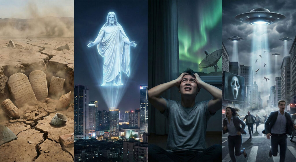Ironically, Blue Beam’s social impact can be achieved without its most extravagant claims. A modern “manufactured revelation” could be attempted using: