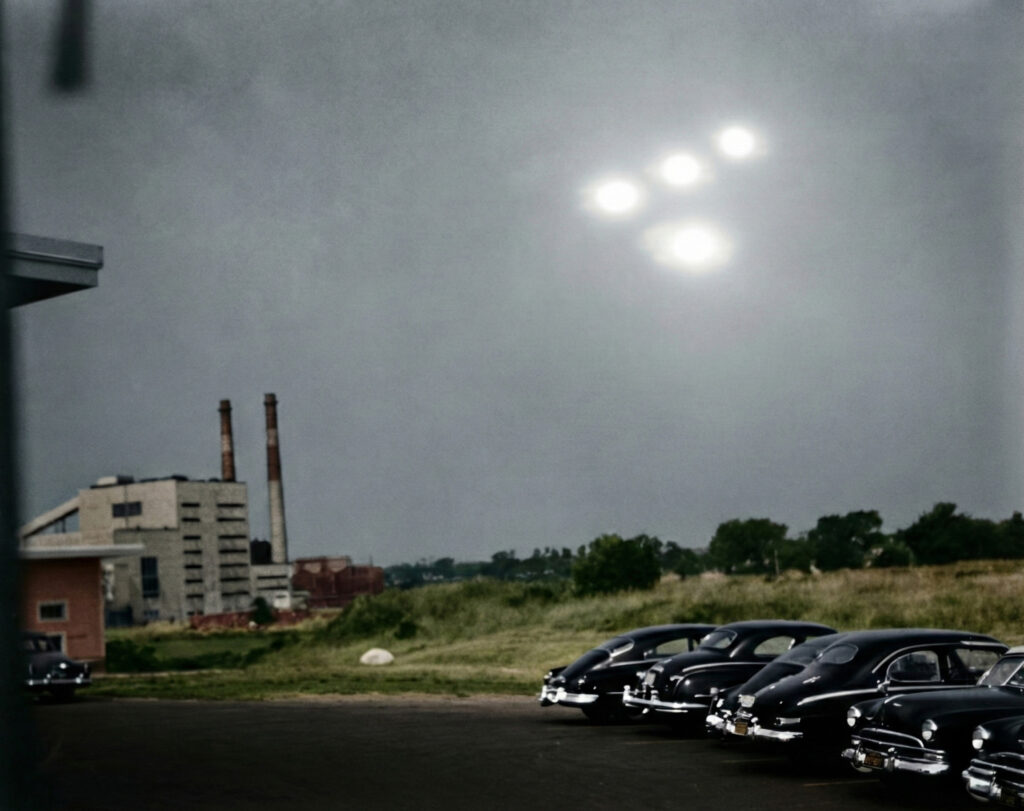 Digitally Restored and Enhanced ImageOriginal ImageUnited States Coast Guard photographer Shell R. Alpert took a photograph through a window screen that allegedly showed unidentified flying objects flying in a “V” formation at the Salem, Massachusetts, Air Station at 9:35 a.m. on 16 July 1952 (LOC | UAPedia).