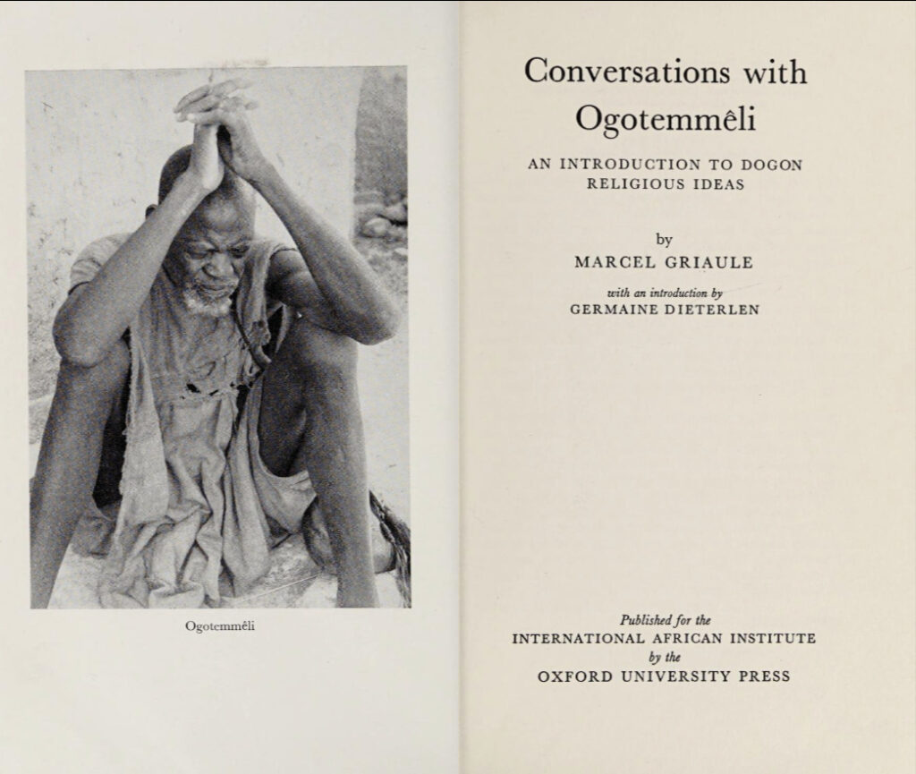 - Conversations with Ogotemmêli by Marcel Griaule, which records thirty‑three days of teaching by the elder Ogotemmêli in 1946. (Amazon)