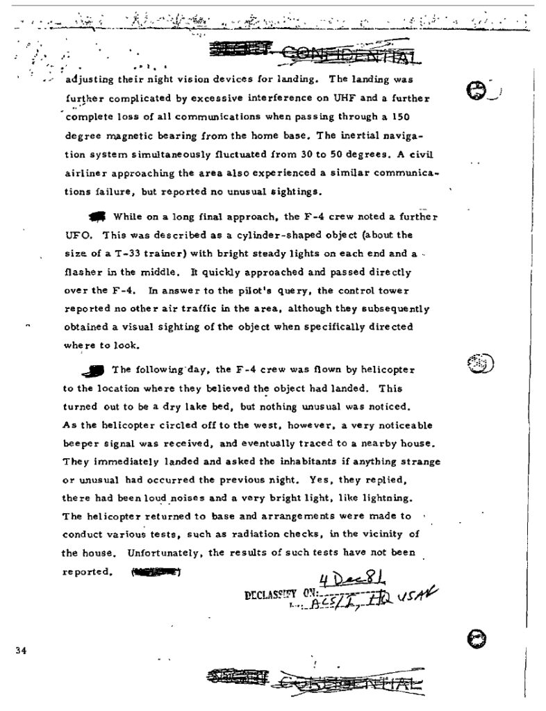 - Multi-sensor & multi-aircraft: Two separate F-4s reported EMI/comm loss correlated with proximity; F-4 #2 obtained radar lock, and Mehrabad (once prompted by the jet) reported visual on an object in a no-traffic sector. A civilian airliner also logged a comms anomaly near Kilo Zulu the same night. U.S. Department of War