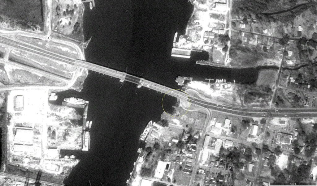 Abandoned pier on the Pascagoula River bank where the incident happened – 1973